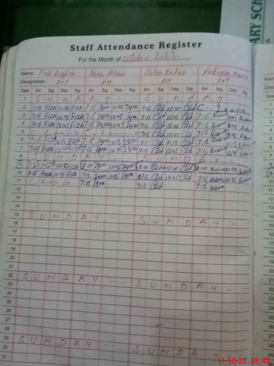 | CNIC | Full Name | Designation | R/C | Absence During Last Calender Month |