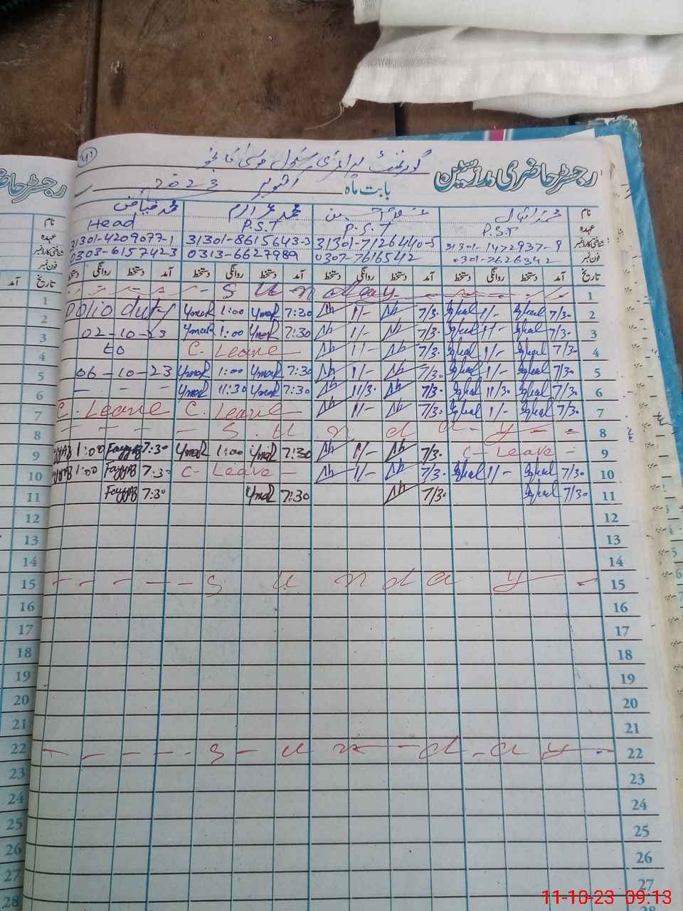 | Name: MU**** FI**** Designation: (School Headmaster's/Headmistress's) PST Phone/Cell Number: 03**** |