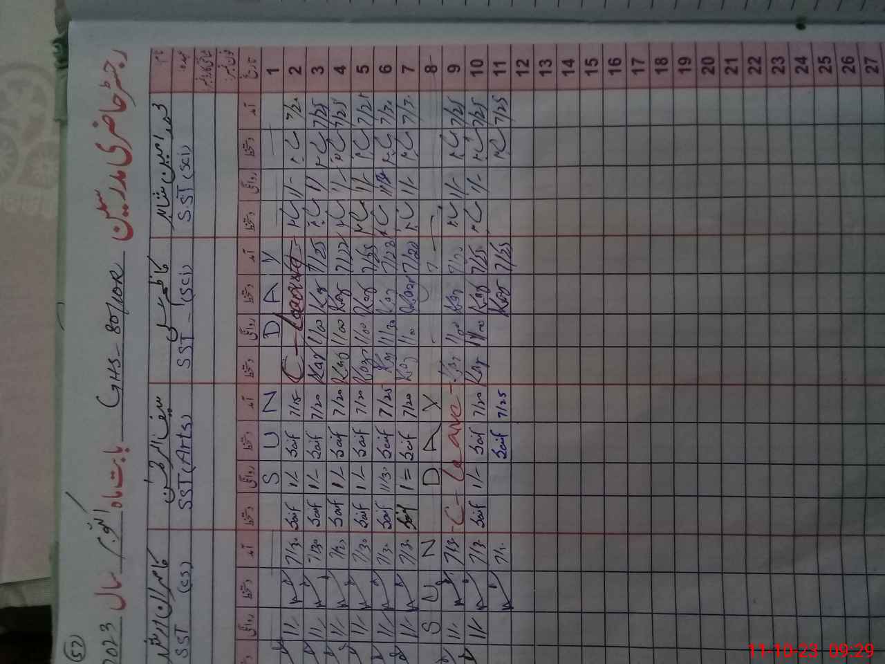 | No. of Students Present - Female | 0 | 0 | 0 | 0 | 0 | 0 | 0 | 0 | 0 | 0 | 0 | 0 | 0 | 0 | ||