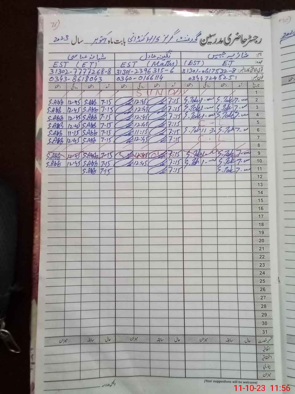 | Name: SH**** JA**** Designation: (School Headmaster's/Headmistress's) EST (G) Phone/Cell Number: 03**** |
