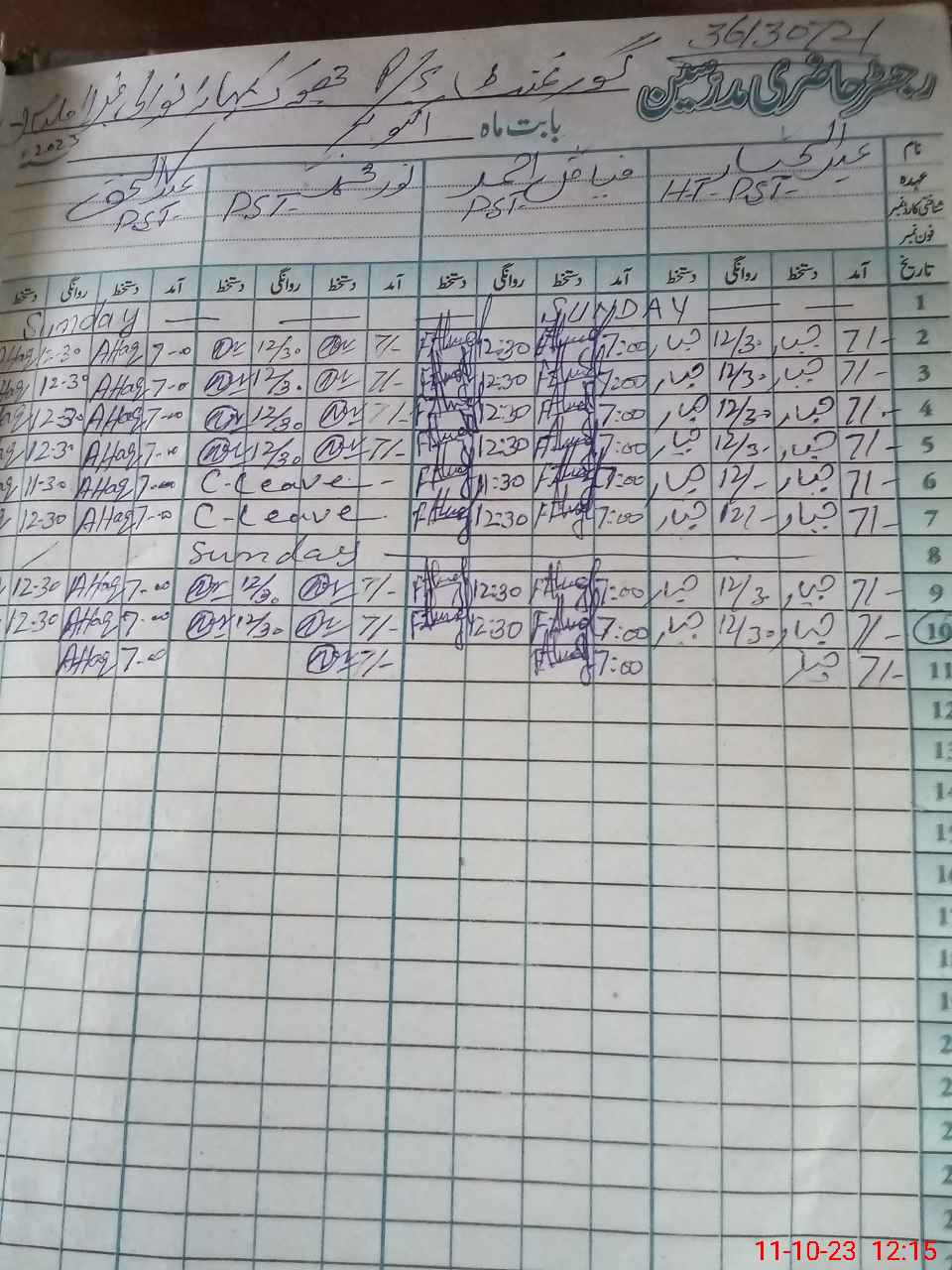 | CNIC | Full Name | Designation | R/C | Absence During Last Calender Month |