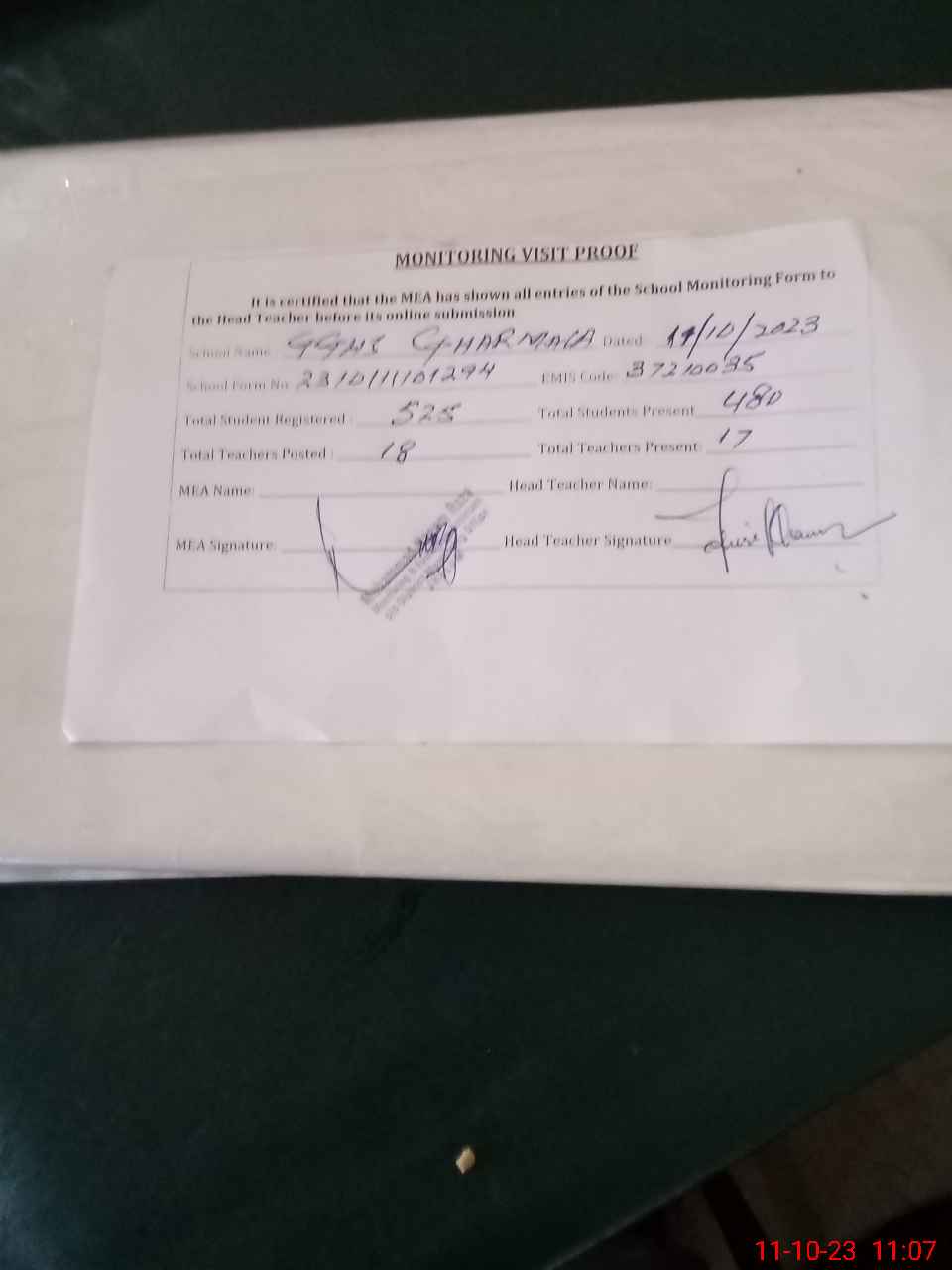 | EMIS Code: 37210035 | Name of School: GGHS GHARMALA | |||