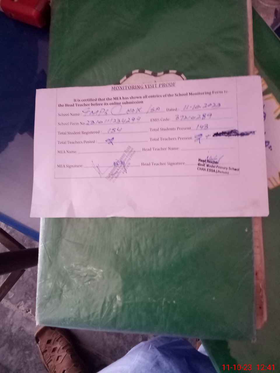 | EMIS Code: 37210289 | Name of School: GMPS CHAK ISA | |||