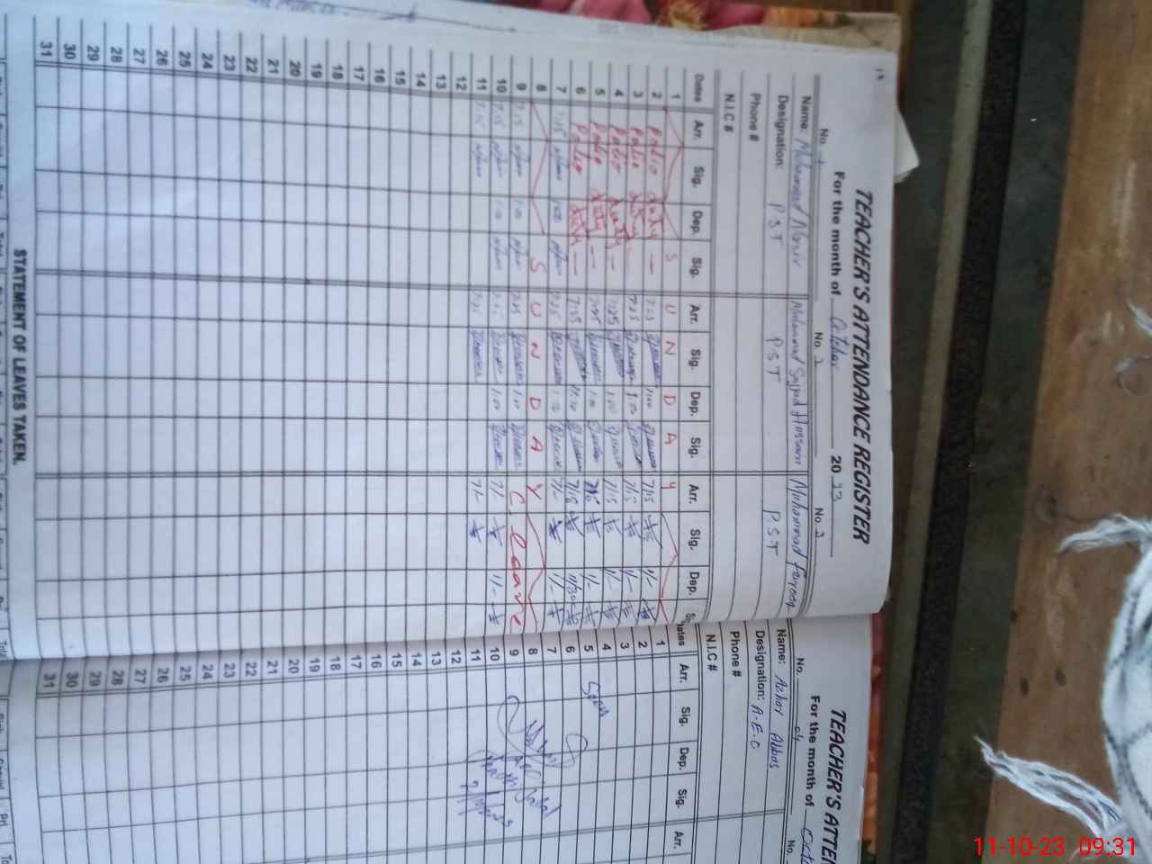 | Attendance Register | Head Teacher | MEA with School | Visit Proof |