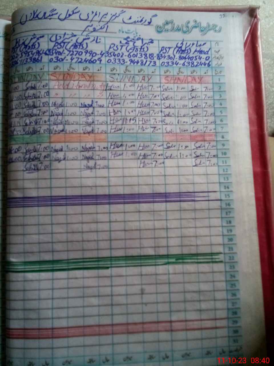 | Name: SA**** RA**** Designation: (School Headmaster's/Headmistress's) PST Phone/Cell Number: 03**** |