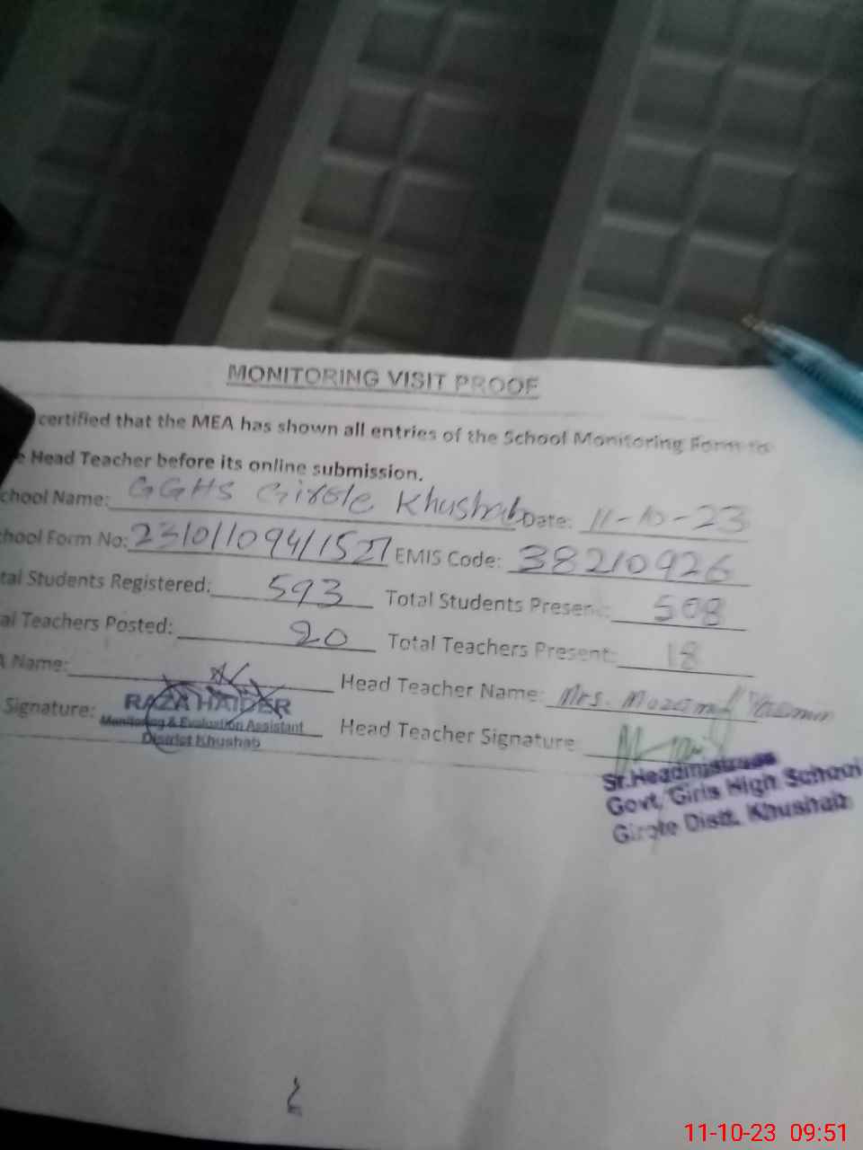| EMIS Code: 38210926 | Name of School: GGHS GIROTE KHUSHAB | |||