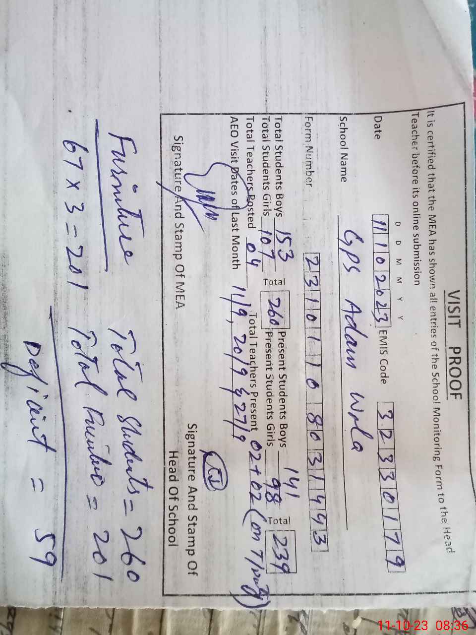 | EMIS Code: 32330179 | Name of School: GPS ADAM WALA | |||