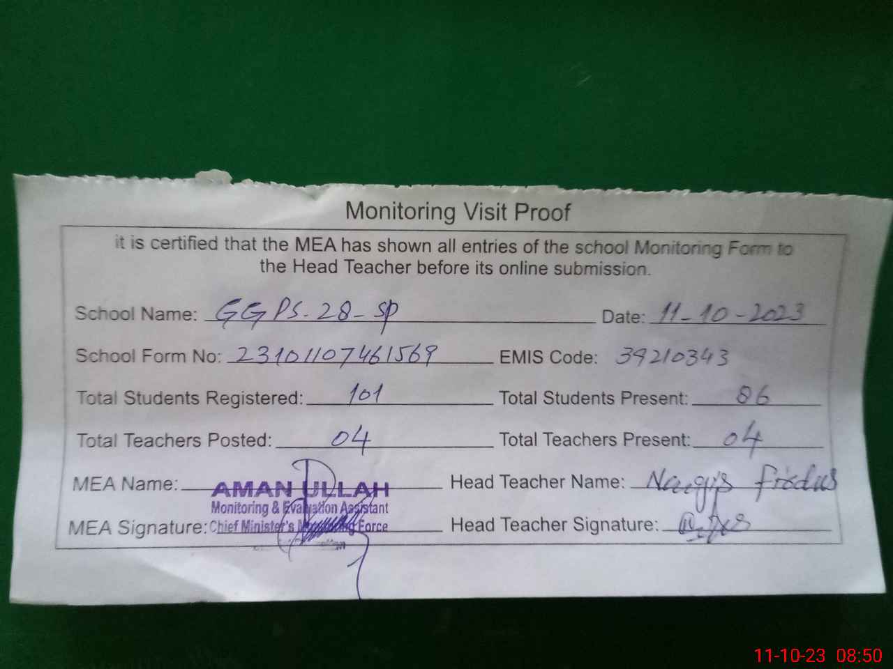 | EMIS Code: 39210343 | Name of School: GGPS 28 SP | |||
