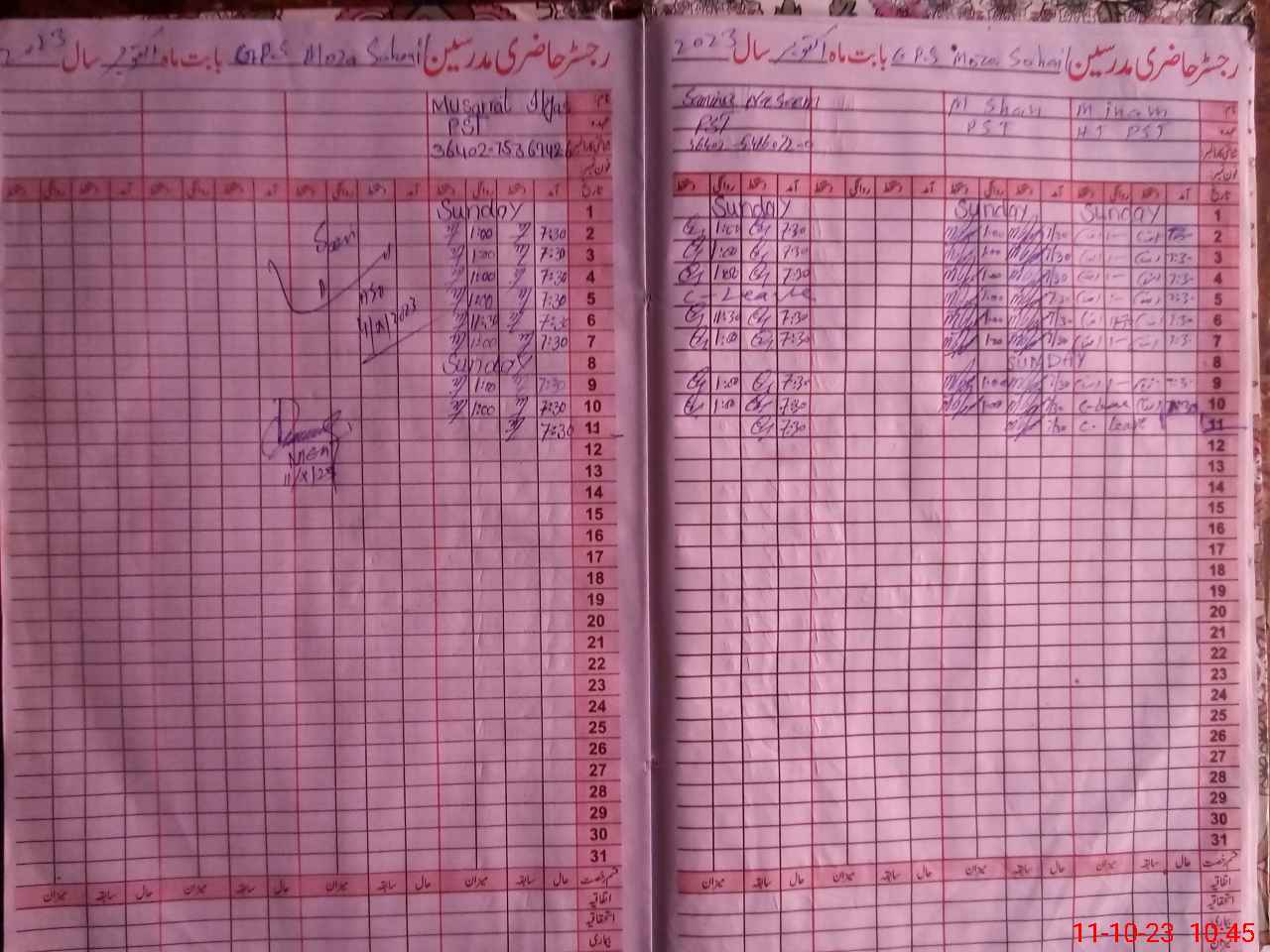 | Name: MU**** IN**** Designation: (School Headmaster's/Headmistress's) PST Phone/Cell Number: 03**** |