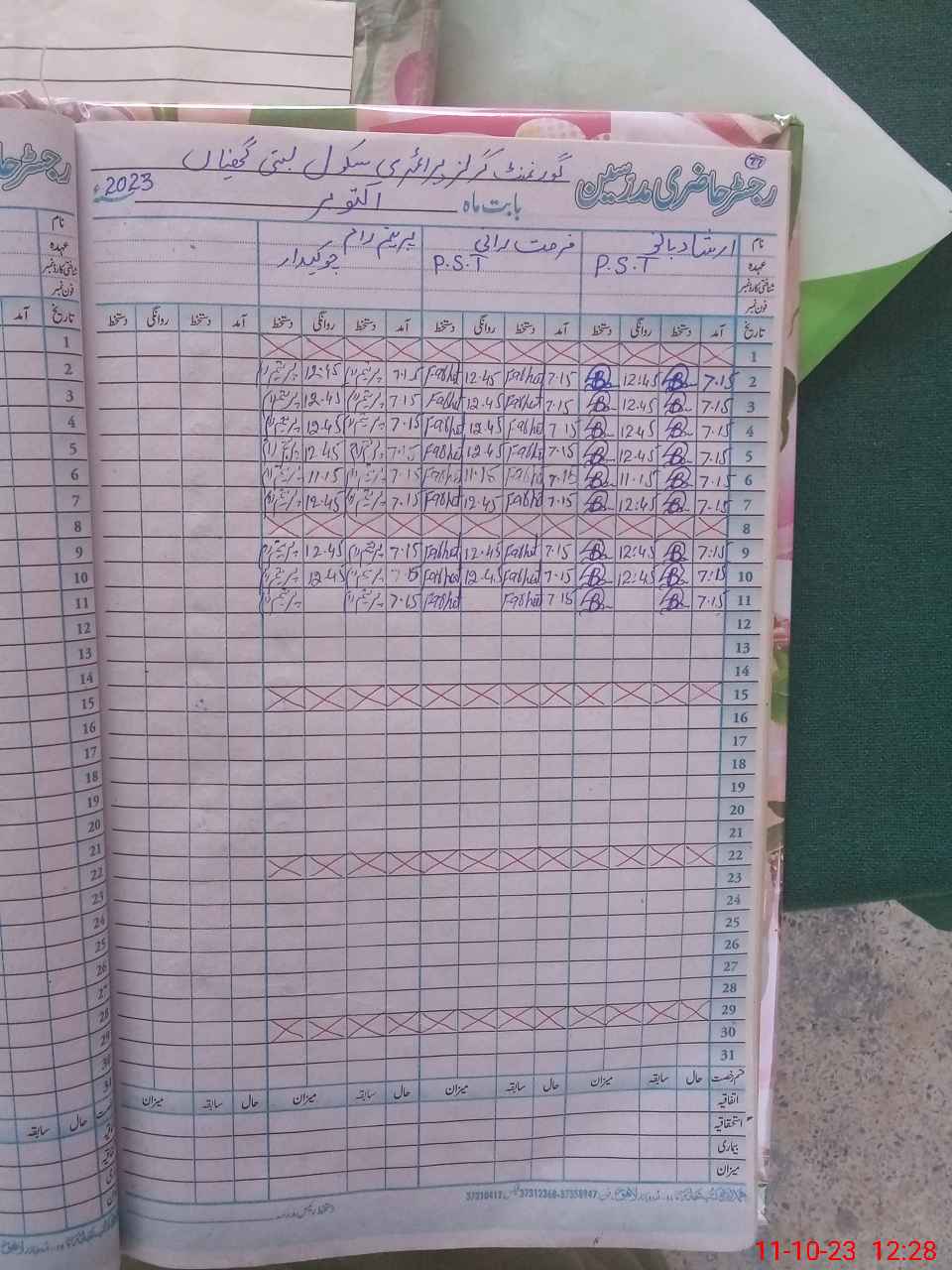 | Name: IR**** BA**** Designation: (School Headmaster's/Headmistress's) PST Phone/Cell Number: 03**** |