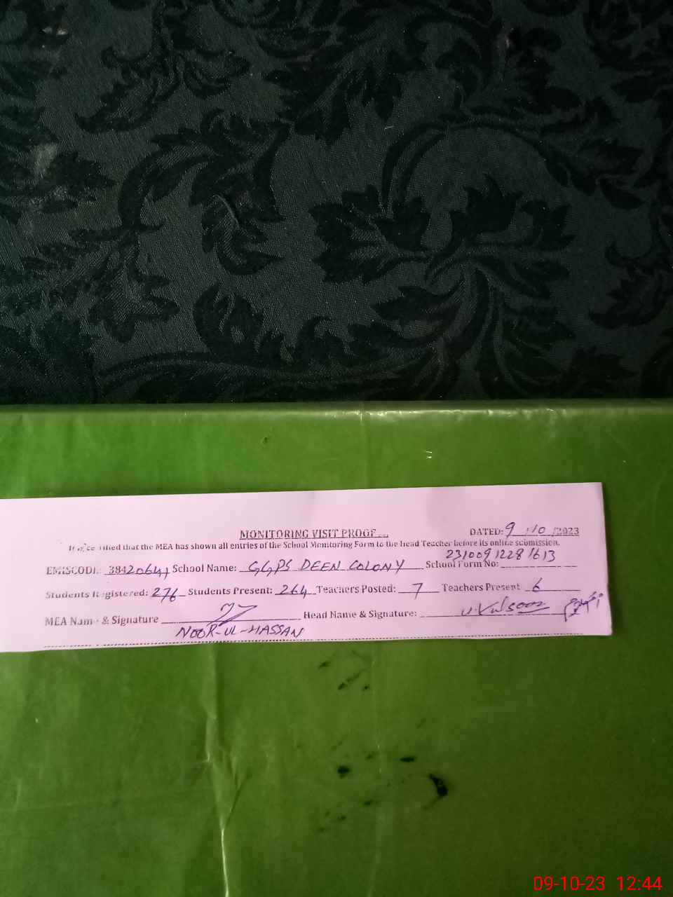 | Certified that this School was Inspected by the Undersigned MEA/DMO Today and the Information Stated Above is as Per Record. | |||||
