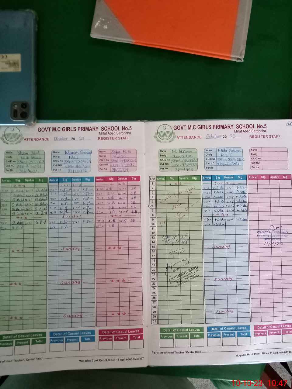 | CNIC | Full Name | Designation | R/C | Absence During Last Calender Month |