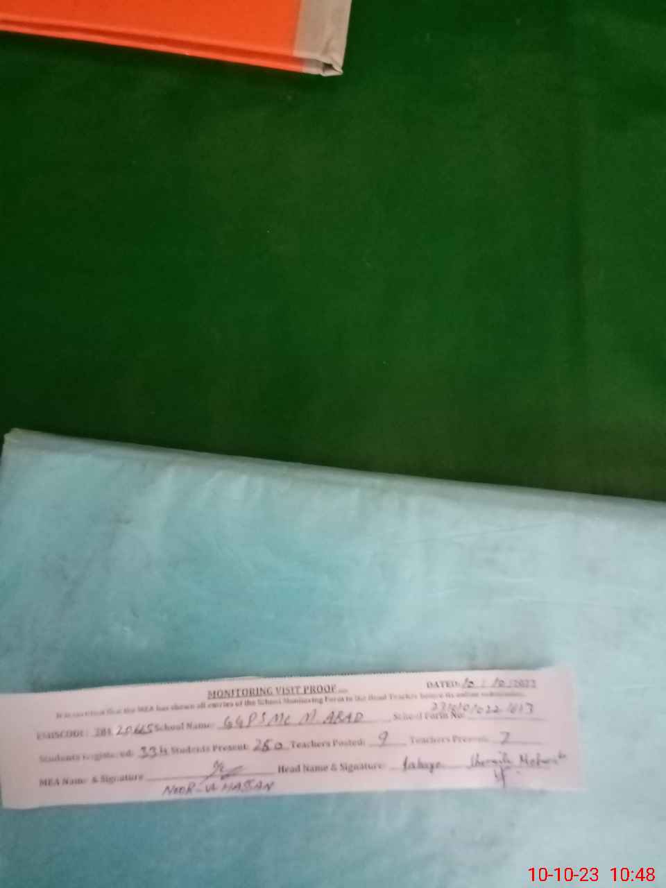 | Monitoring Date: 10-10-2023 | Start Time: 10-10-2023 09:56 AM | End Time: 10-10-2023 10:49 AM | Name of MEA: NO**** ULHA**** | |