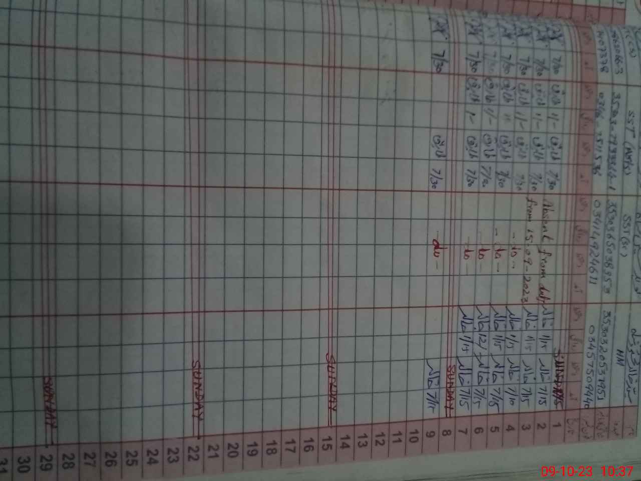 | 35**** | Na**** Hu**** Sh**** | 5 | 1 | 0 | 0 | 0 | 0 | 0 | 0 | 0 | 0 | 0 | Absent (Un-Authorized) |
