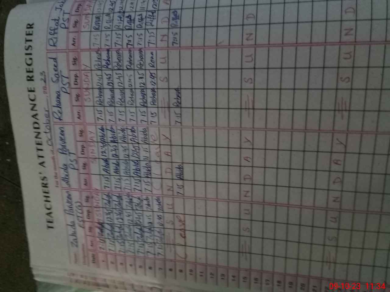| CNIC | Full Name | Designation | R/C | Absence During Last Calender Month |