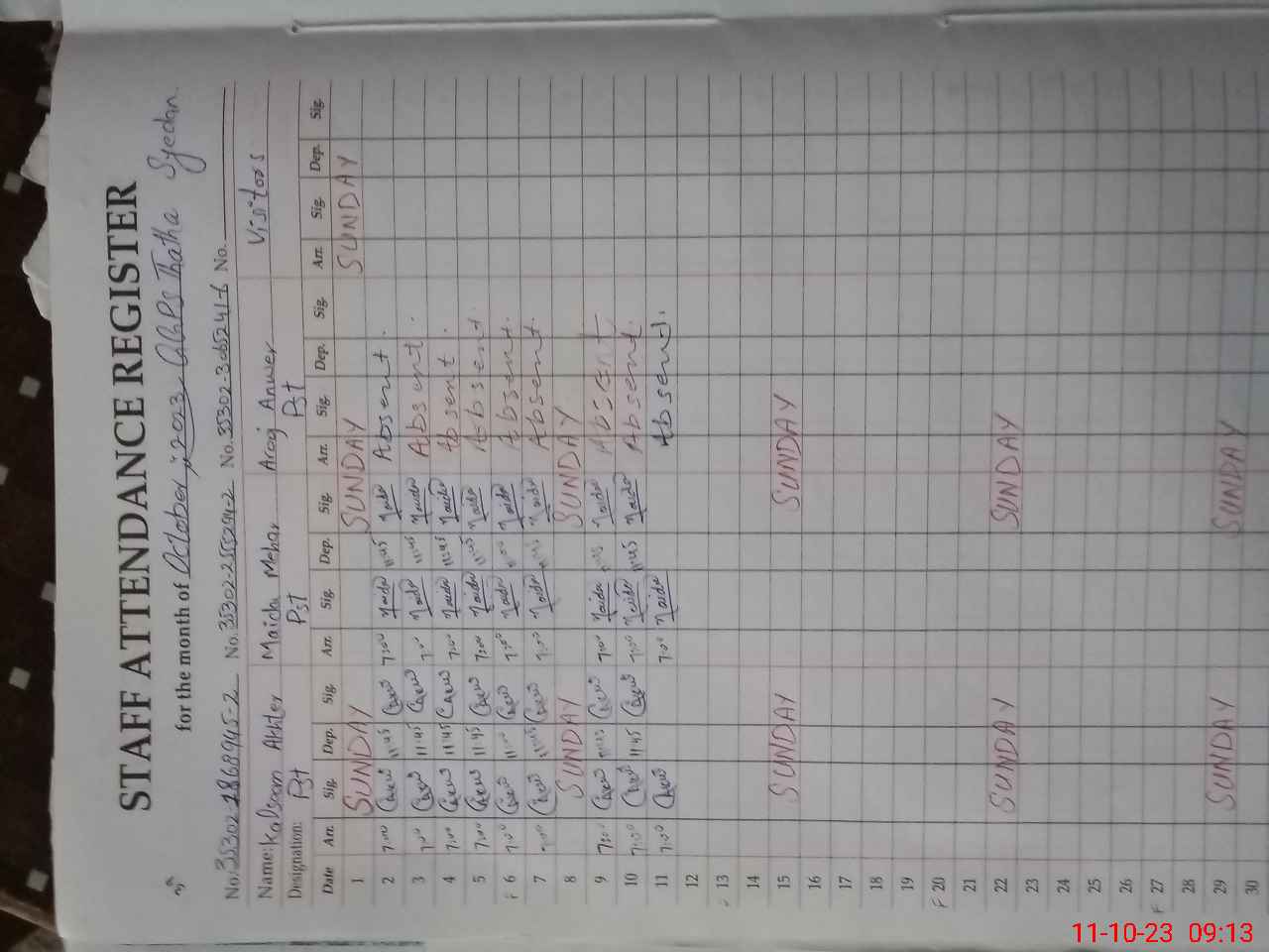 | 35**** | Ar**** An**** | 2 | 0 | 0 | 30 | 0 | 0 | 0 | 0 | 0 | 0 | Absent (Un-Authorized) | |
