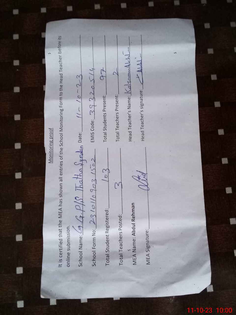 | EMIS Code: 39320514 | Name of School: GGPS THATA SYEDAN | |||