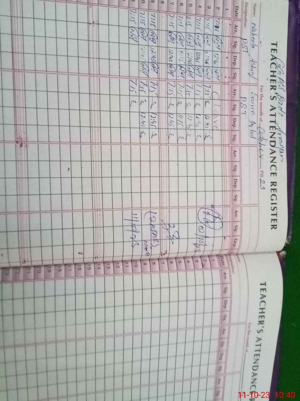| CNIC | Full Name | Designation | R/C | Absence During Last Calender Month |