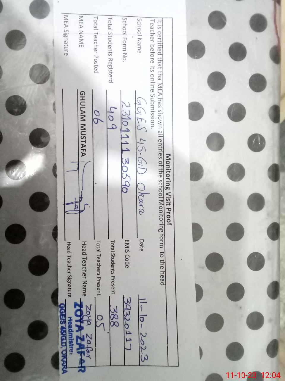 | EMIS Code: 39320117 | Name of School: GGES 45/G.D OKARA | |||