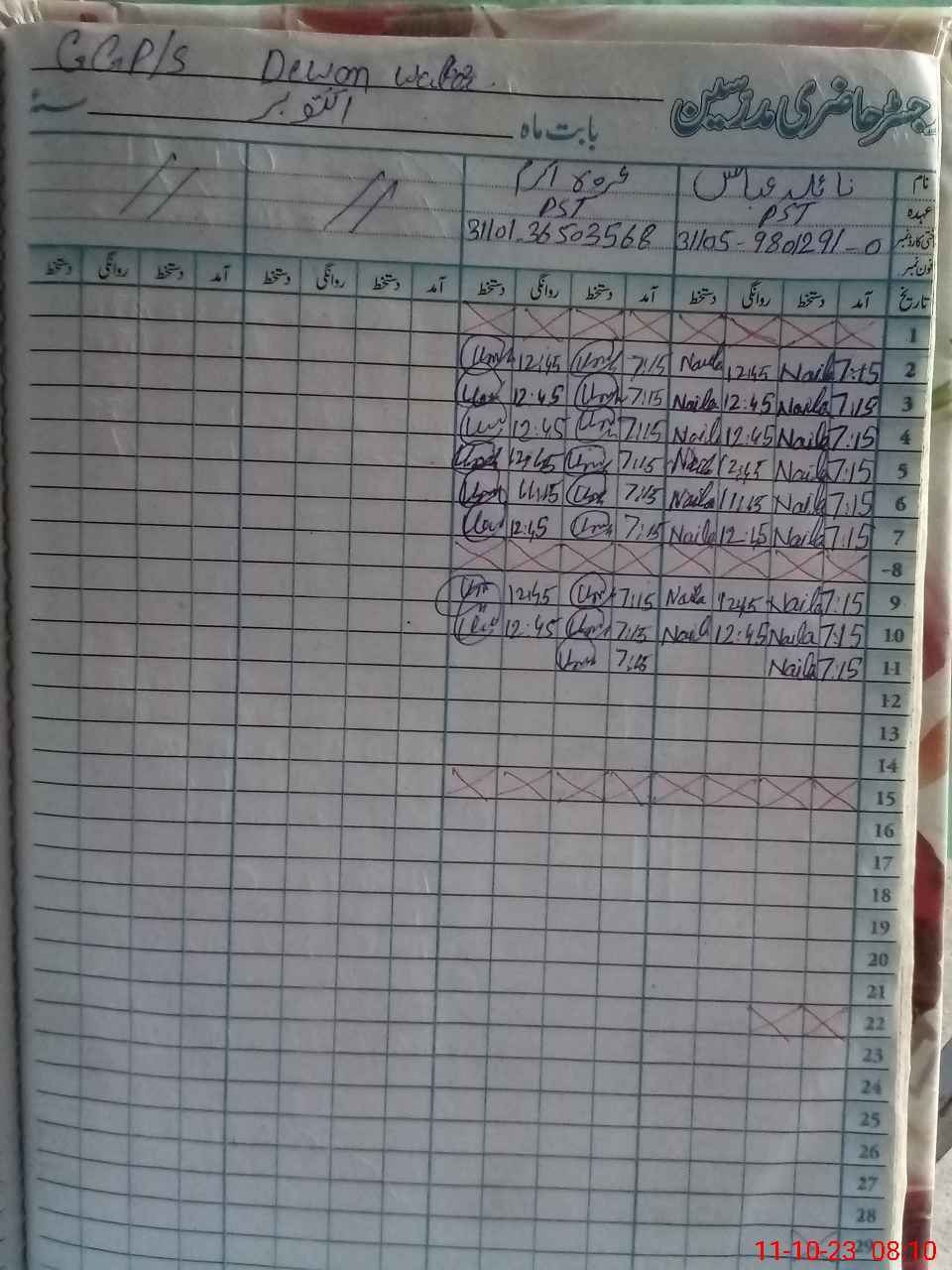 | Name: NA**** AB**** Designation: (School Headmaster's/Headmistress's) PST Phone/Cell Number: 03**** |