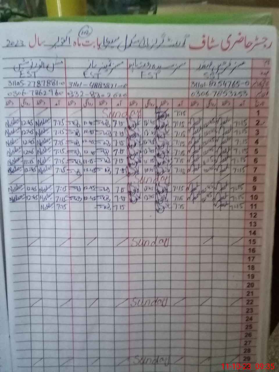 | Name: Sa**** Na**** Designation: (School Headmaster's/Headmistress's) SST. Art Phone/Cell Number: 03**** |