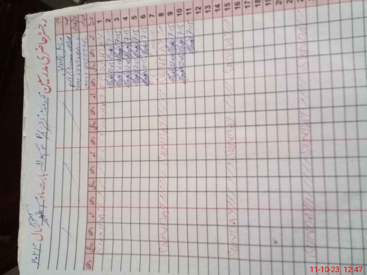 | Name: MU**** SI**** Designation: (School Headmaster's/Headmistress's) PST Phone/Cell Number: 03**** |