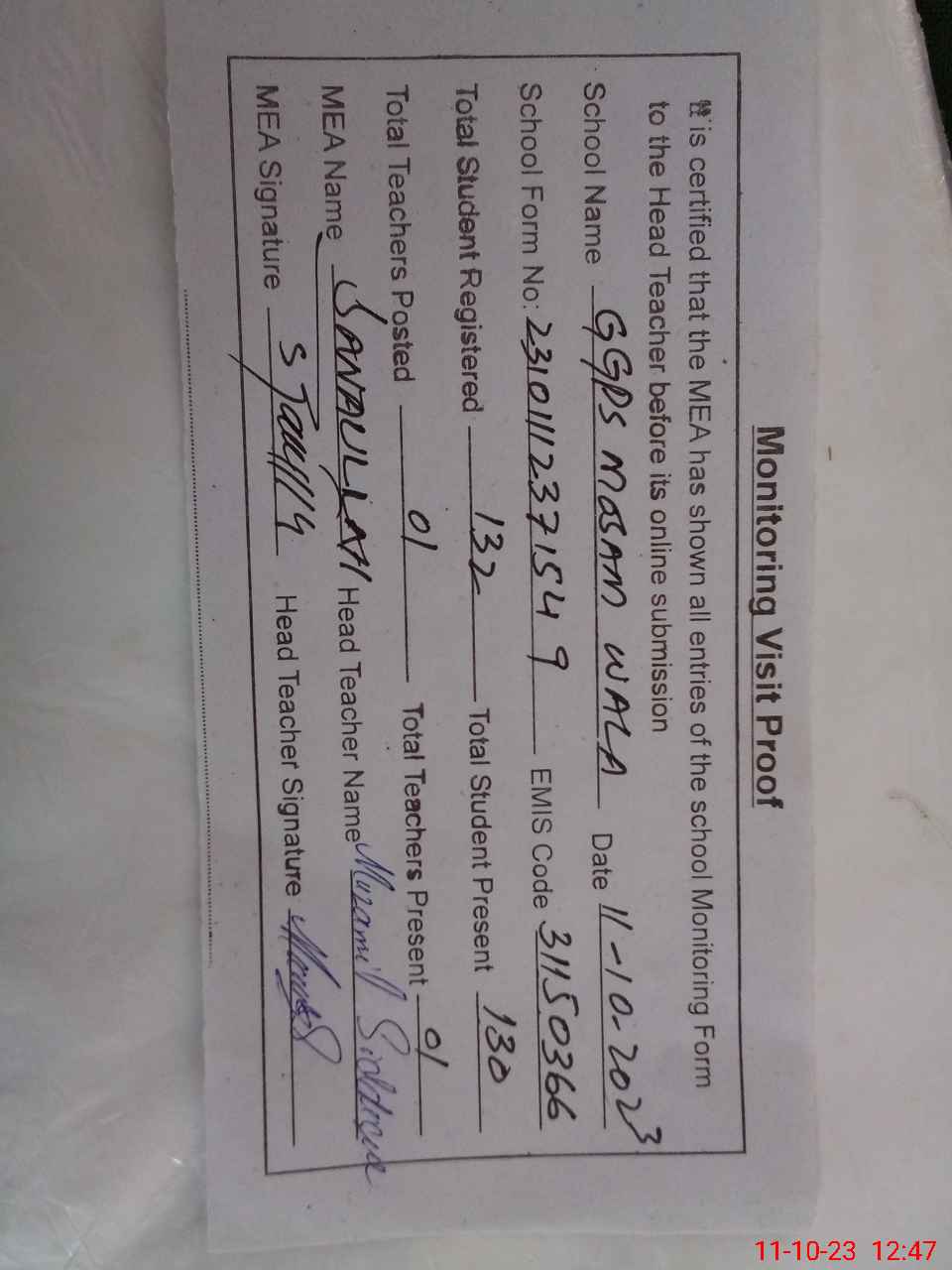 | EMIS Code: 31150366 | Name of School: GGPS MOSAM WALA | |||