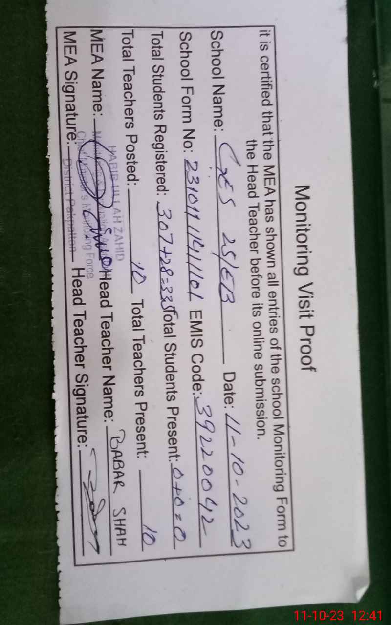 | EMIS Code: 39220042 | Name of School: GES CHAK NO. 25 / EB | |||