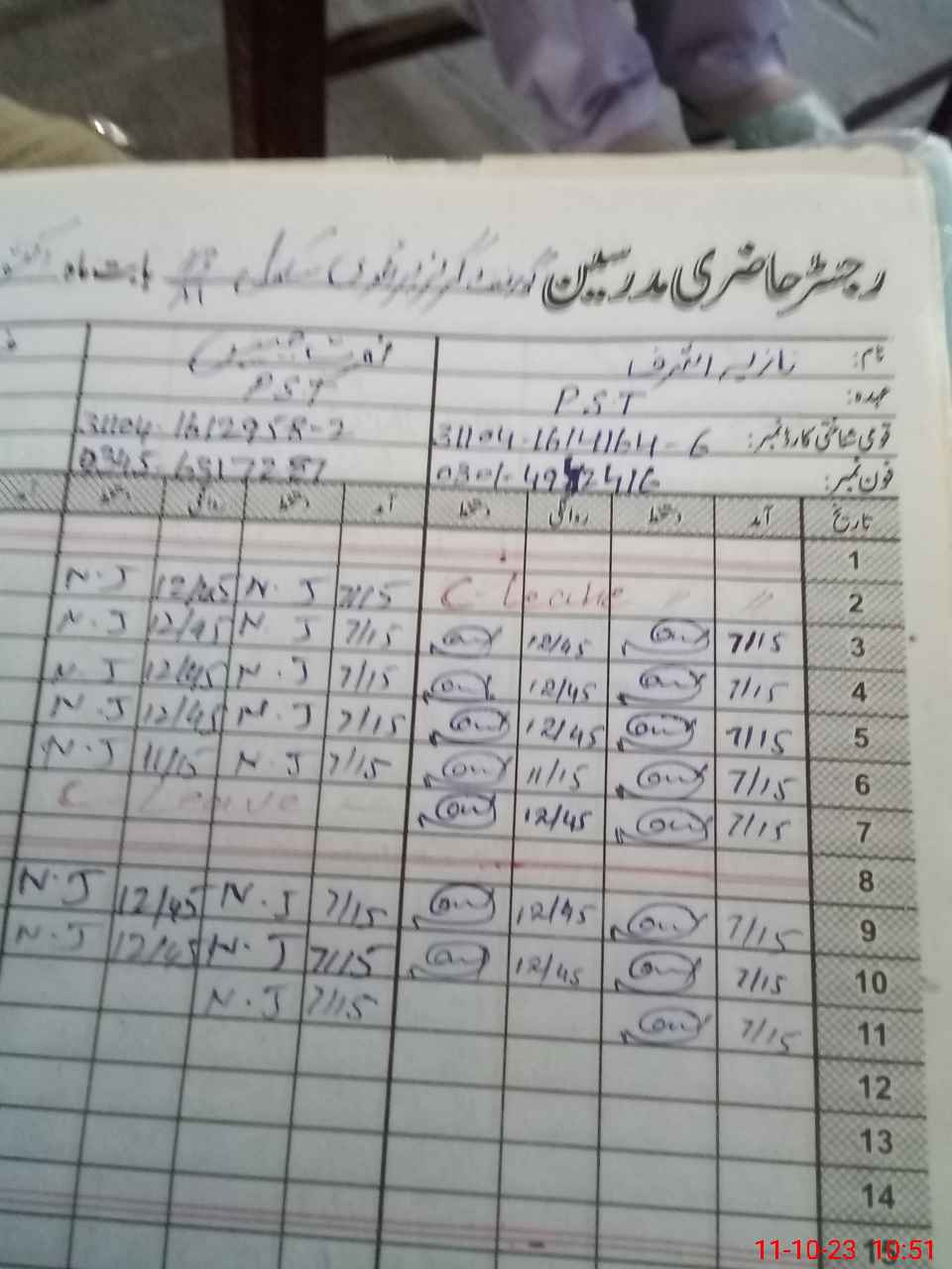 | CNIC | Full Name | Designation | R/C | Absence During Last Calender Month |