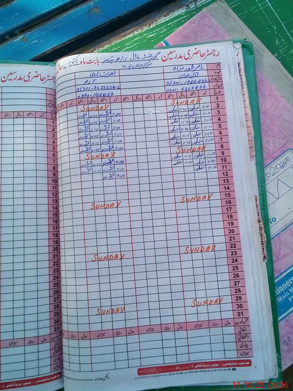 | Name: Nu**** Bi**** Designation: (School Headmaster's/Headmistress's) PST Phone/Cell Number: 03**** |