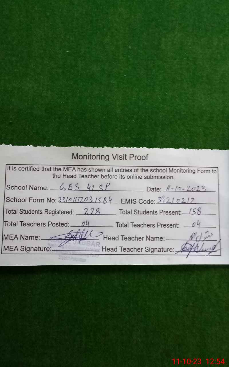 | EMIS Code: 39210212 | Name of School: GES 41 SP | |||