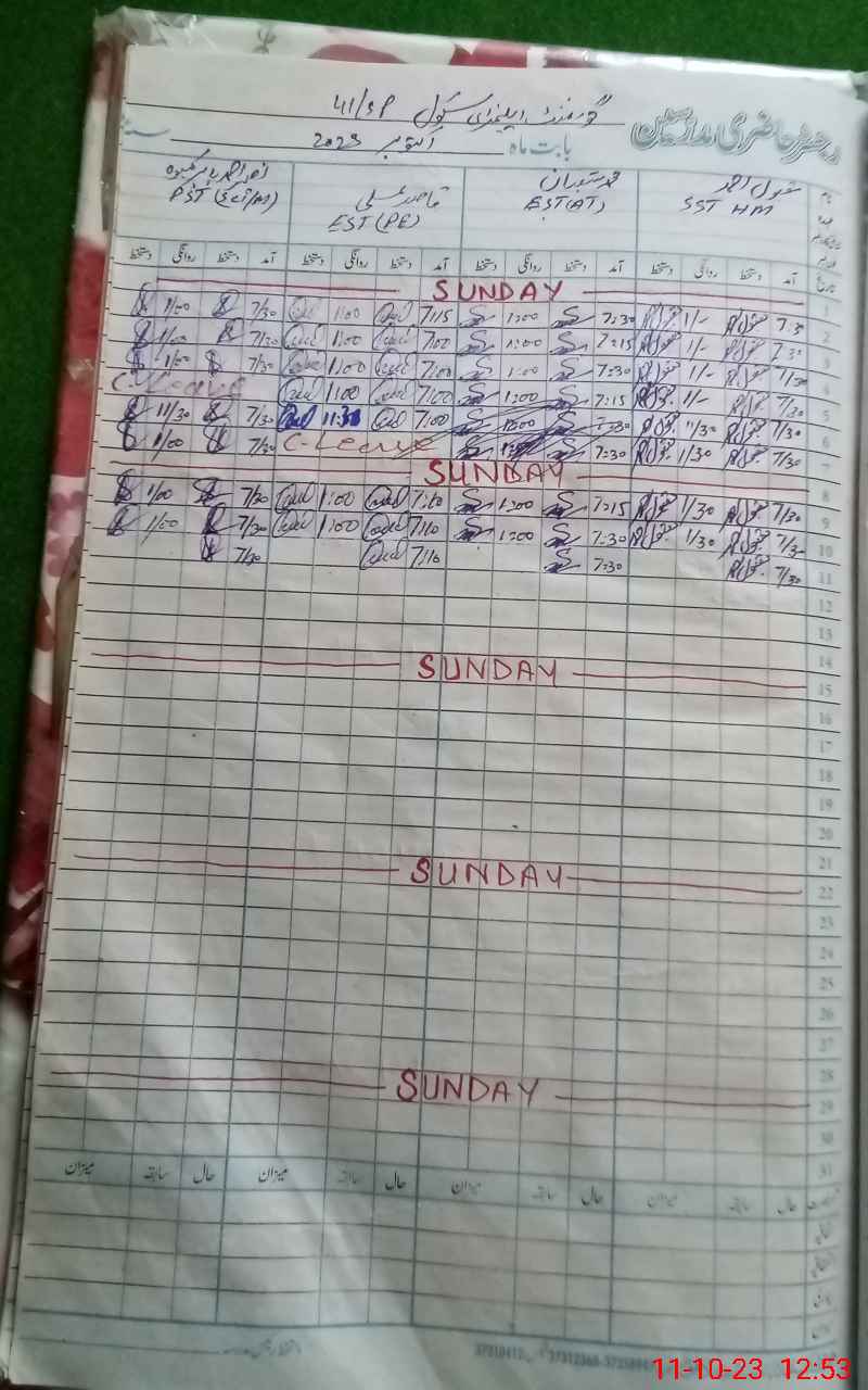 | CNIC | Full Name | Designation | R/C | Absence During Last Calender Month |