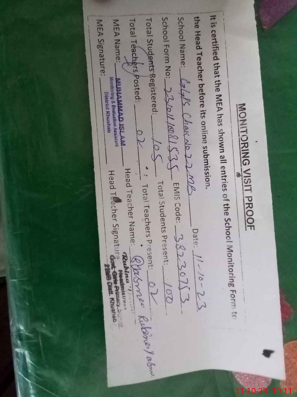 | EMIS Code: 38230753 | Name of School: GGPS CHAK NO 22 MB | |||