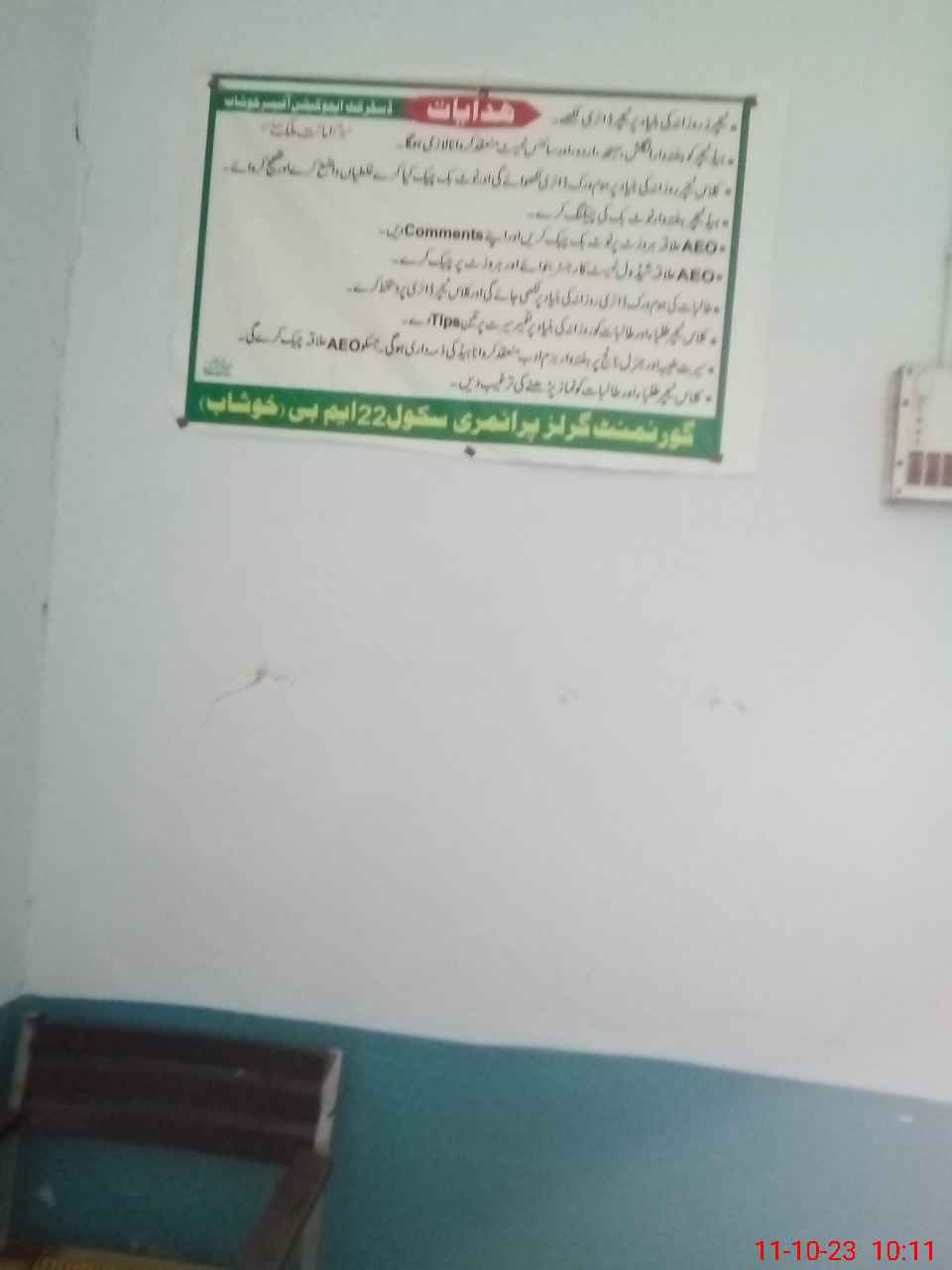 | District: KHUSHAB | Tehsil: QUAIDABAD | Markaz: CHAK NO 22/MB (FEMALE) | Level: Primary | |