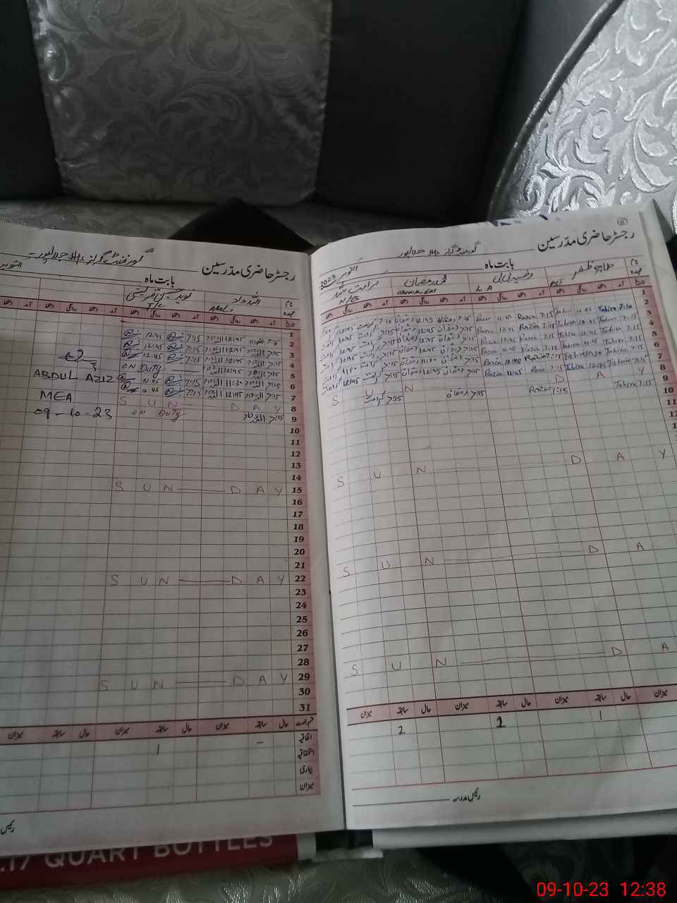 | CNIC | Full Name | Designation | R/C | Absence During Last Calender Month |