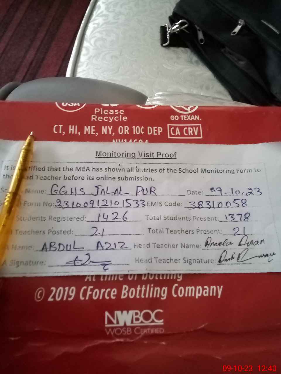 | Certified that this School was Inspected by the Undersigned MEA/DMO Today and the Information Stated Above is as Per Record. | |||||