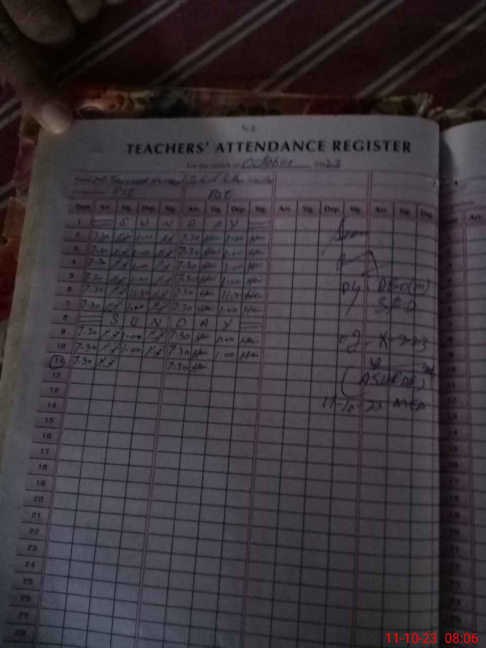 | Monitoring Date: 11-10-2023 | Start Time: 11-10-2023 07:58 AM | End Time: 11-10-2023 08:31 AM | Name of MEA: Mu**** As**** | |