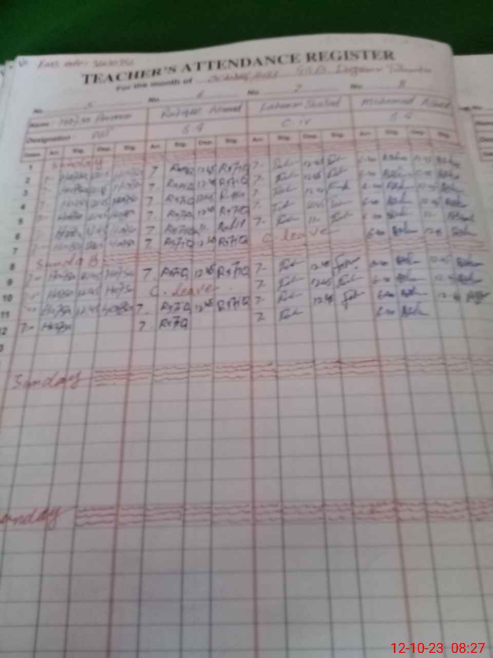 | CNIC | Full Name | Designation | R/C | Absence During Last Calender Month |