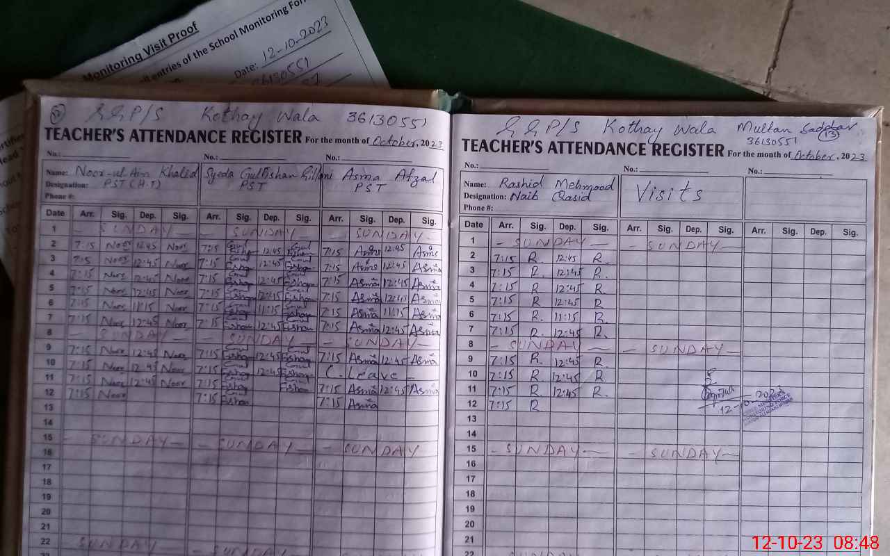 | Attendance Register | Head Teacher | MEA with School | Visit Proof |