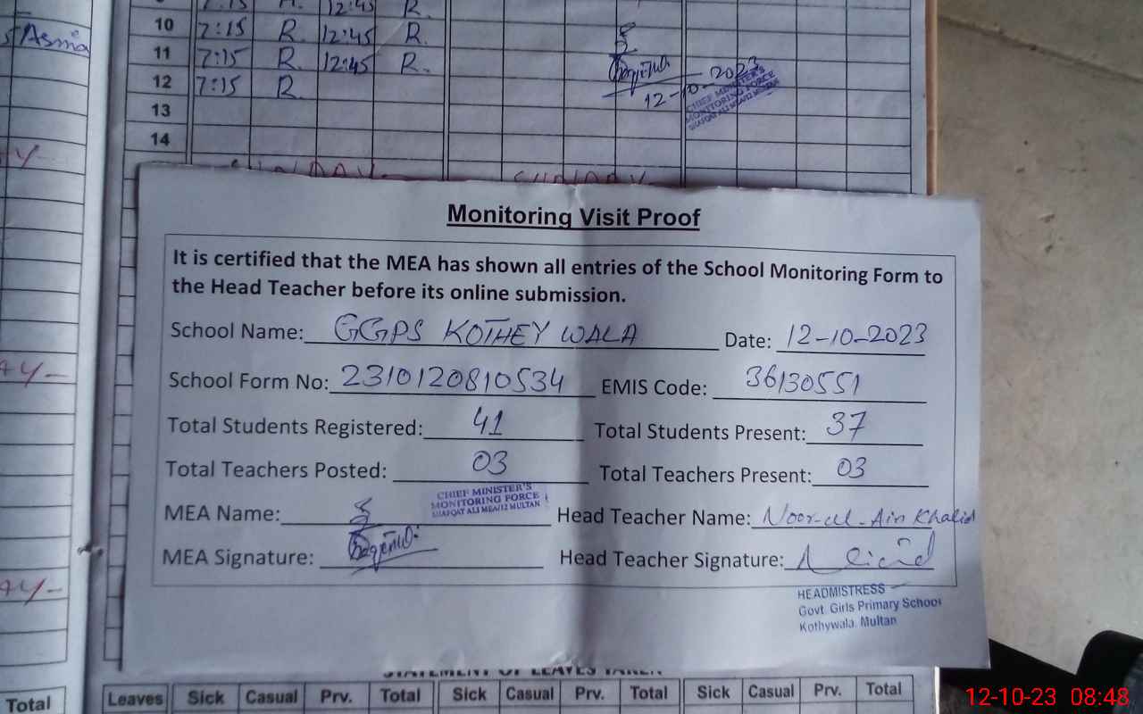 | EMIS Code: 36130551 | Name of School: GGPS KOTHAY WALA | |||