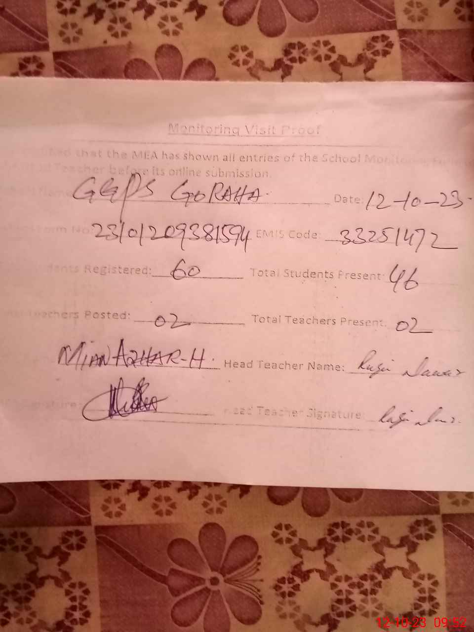 | EMIS Code: 33251472 | Name of School: GGPS GORAHA | |||