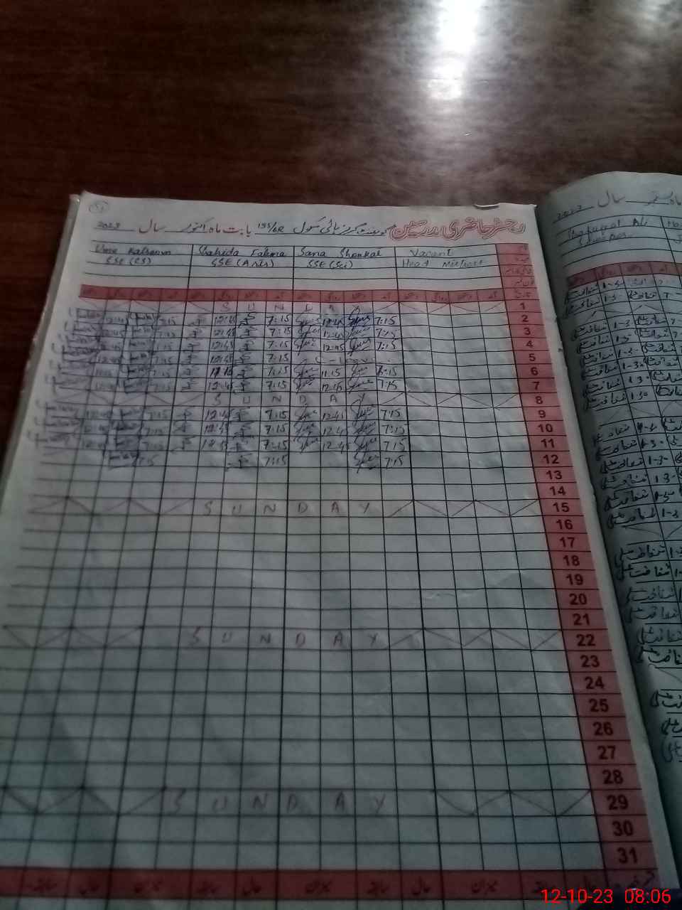 | 31**** | Ha**** Ar**** | JC | 0 | 1 | 0 | 0 | 0 | 0 | 0 | 0 | 0 | Absent (Un-Authorized) | |