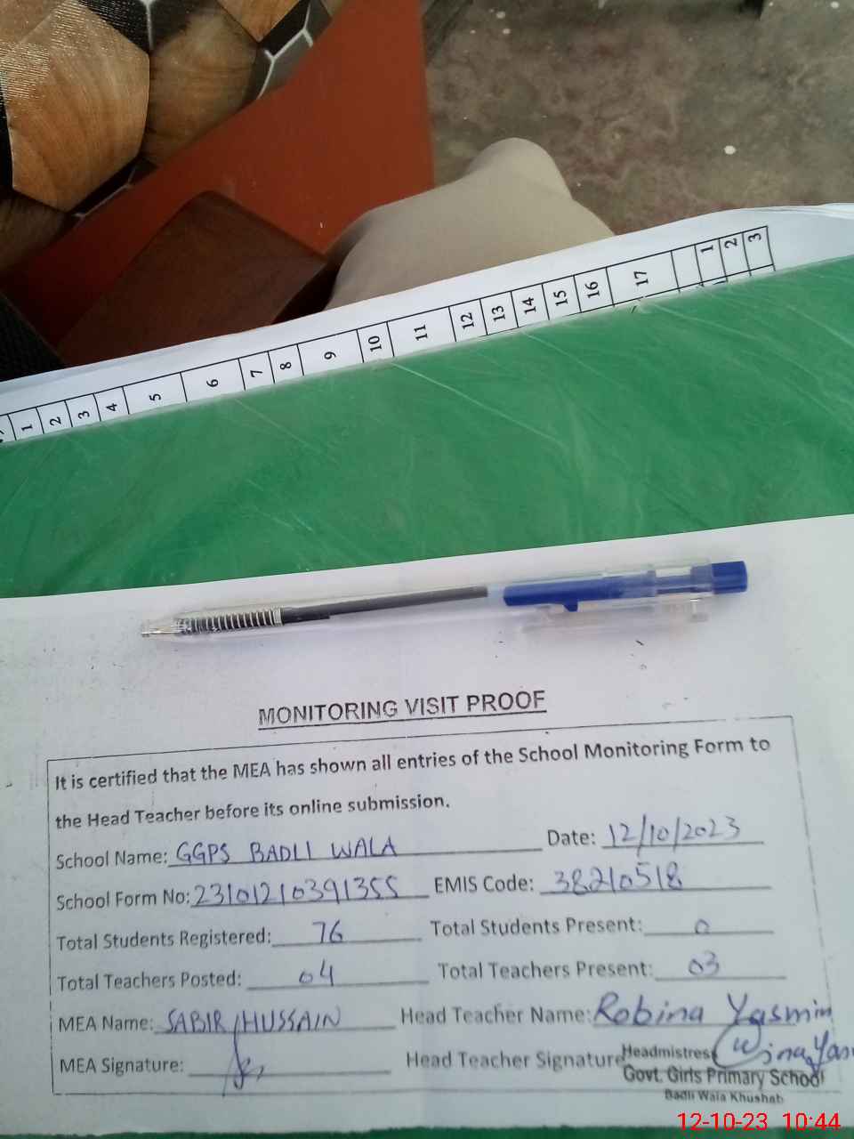 | EMIS Code: 38210518 | Name of School: GGPS BADLI WALA | |||