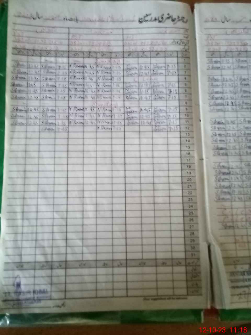| CNIC | Full Name | Designation | R/C | Absence During Last Calender Month |