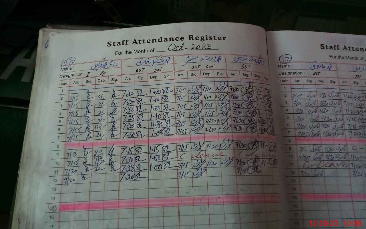 | CNIC | Full Name | Designation | R/C | Absence During Last Calender Month |