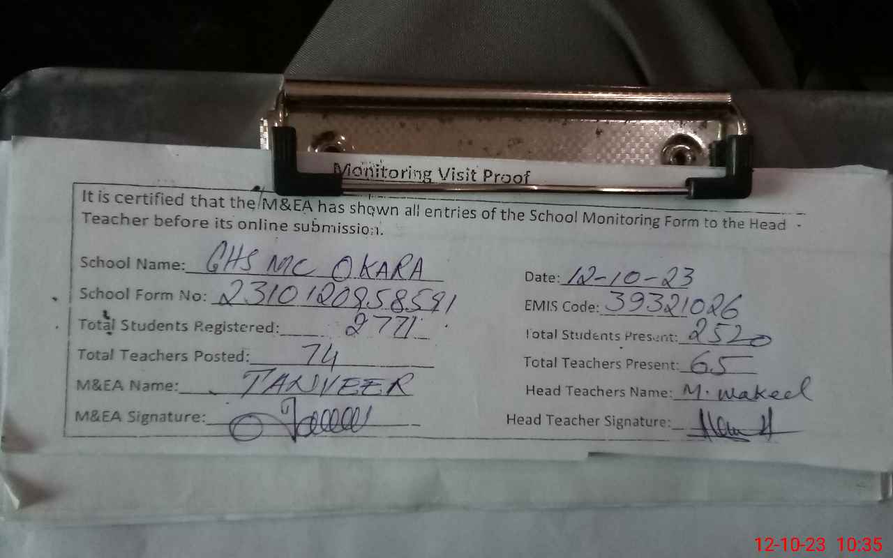 | EMIS Code: 39321026 | Name of School: GHS M.C OKARA | |||