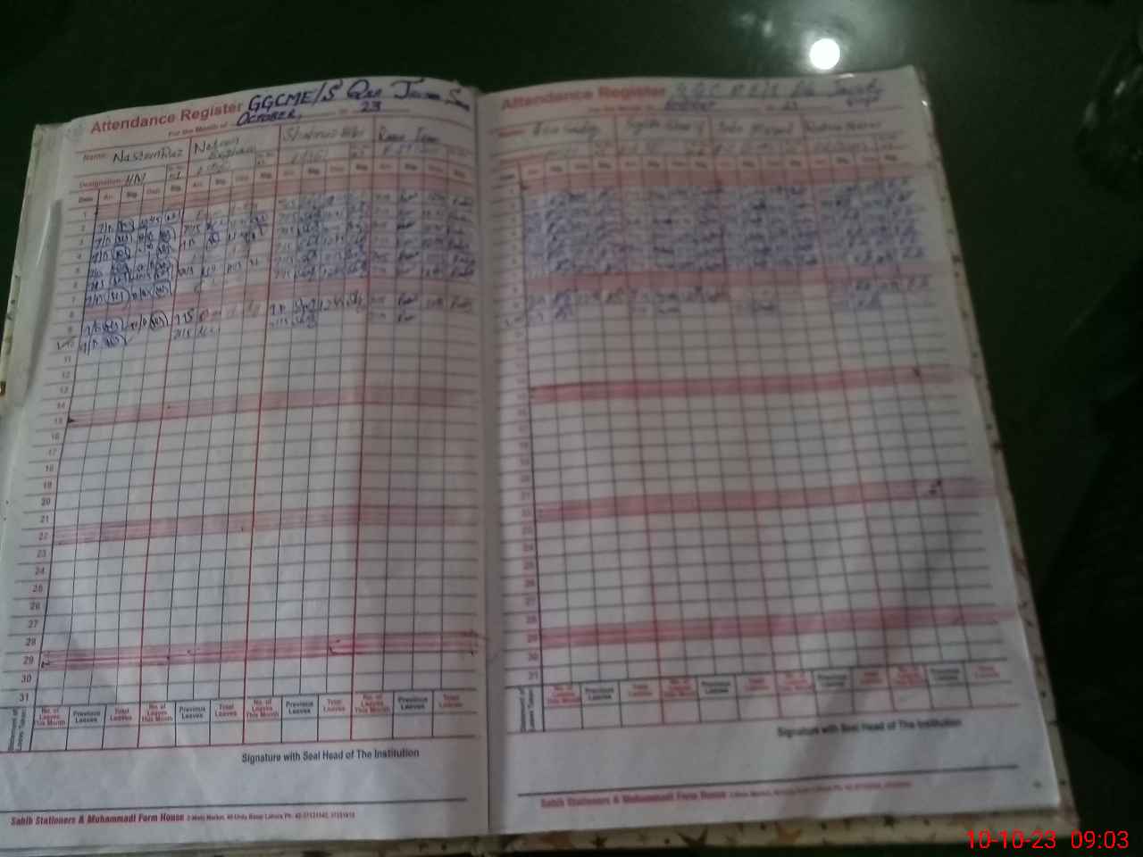 | CNIC | Full Name | Designation | R/C | Absence During Last Calender Month |