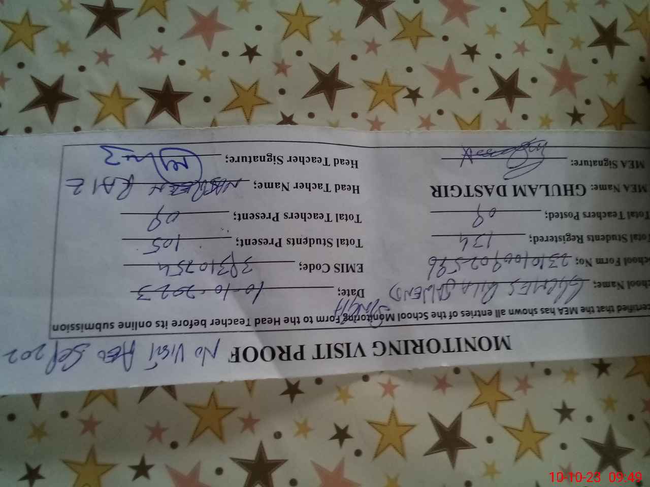 | Attendance Register | Head Teacher | MEA with School | Visit Proof |