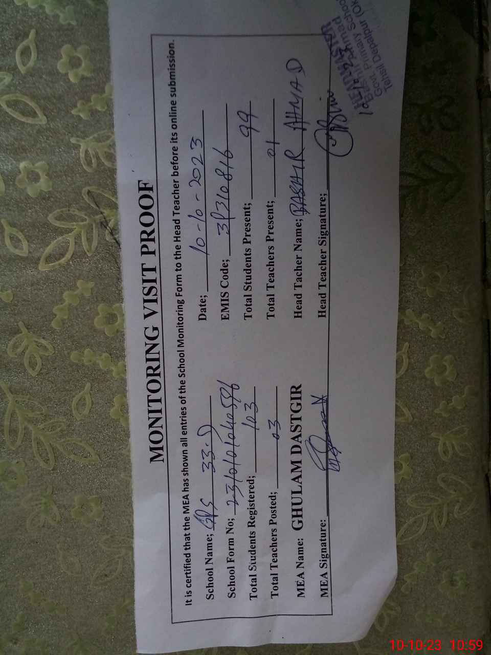 | Certified that this School was Inspected by the Undersigned MEA/DMO Today and the Information Stated Above is as Per Record. | |||||