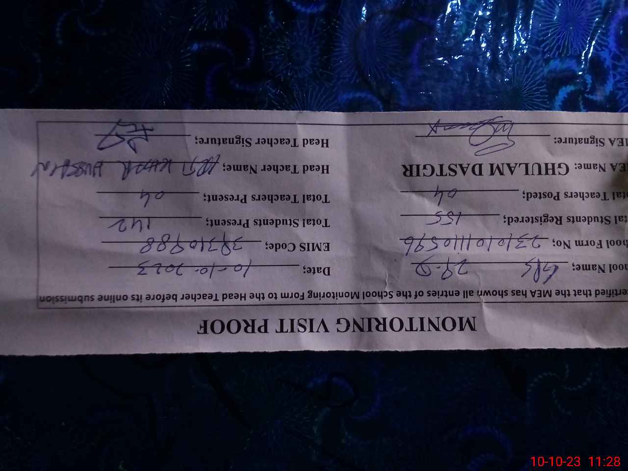 | Name: IF**** HU**** Designation: (School Headmaster's/Headmistress's) PTC/JV Phone/Cell Number: 03**** |